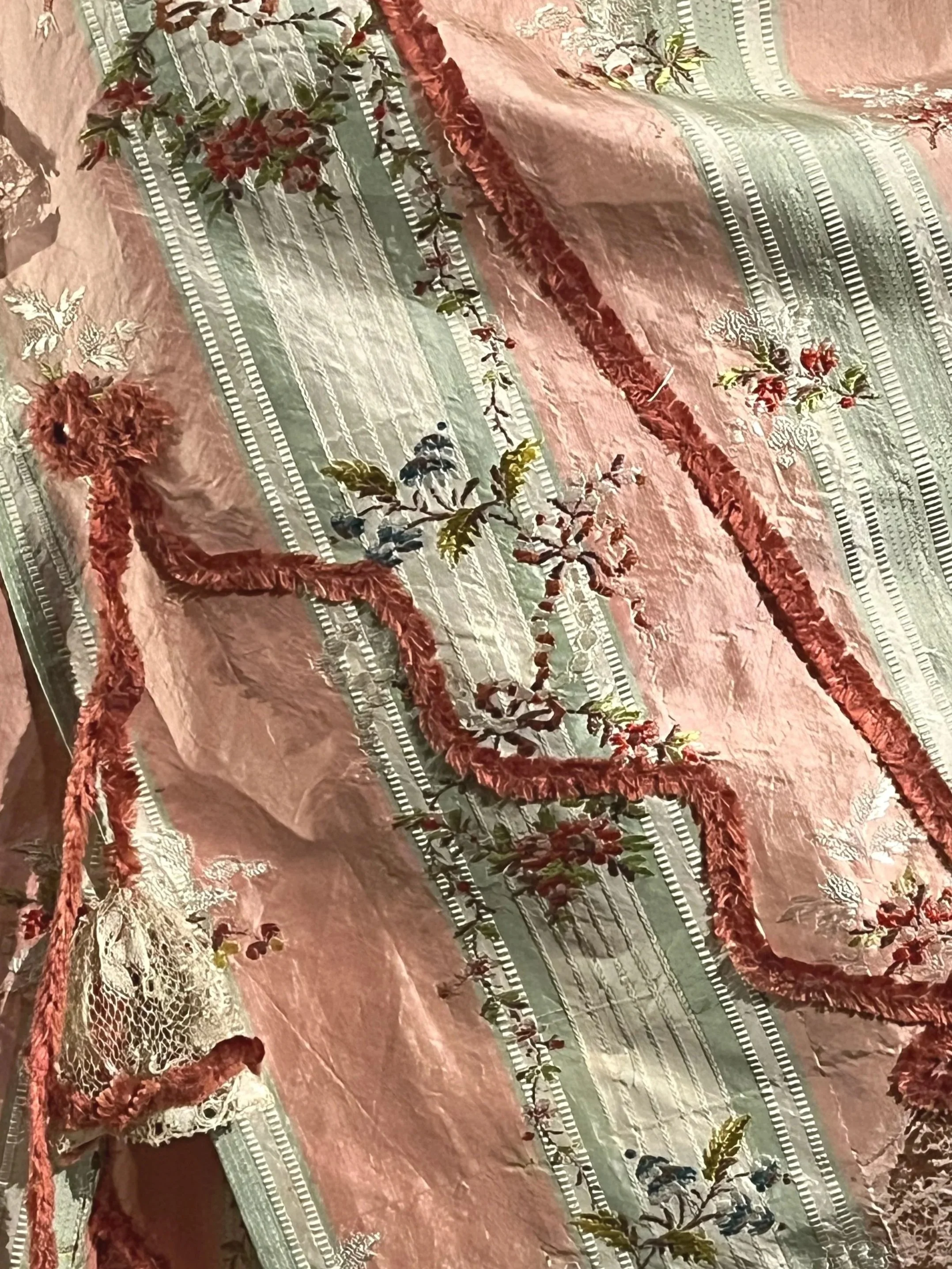 I have so many ideas for new designs and I am continually learning from tutorials and from my own experience. I am looking forward to seeing how my designs develop over time - in style and perhaps also in contentA trip to the V&A never disappoints when looking for inspiration. This silk taffeta was made in about 1775. A beautiful floral and stripe design with a wealth of textures and a delicious colour palette